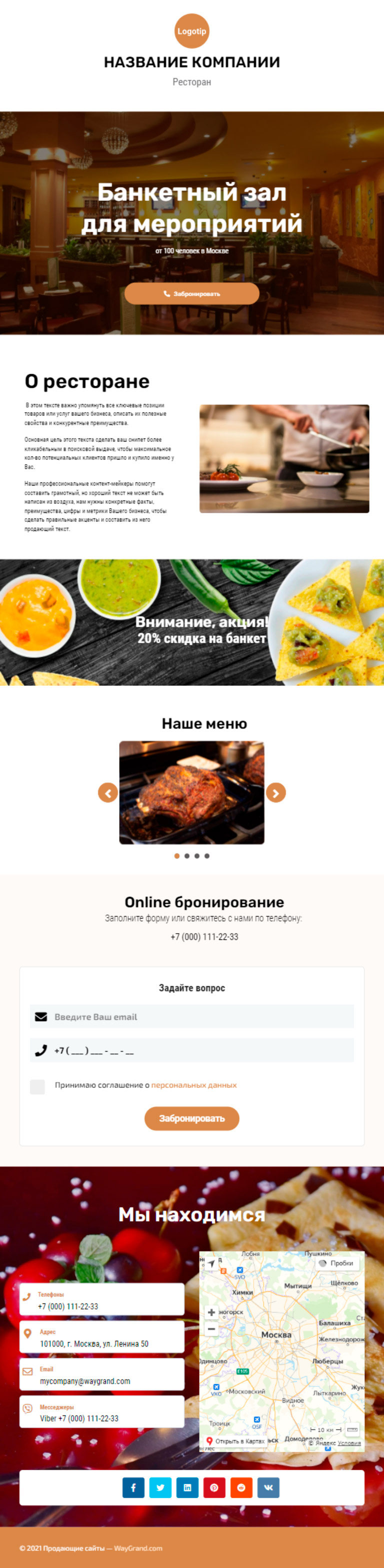Закажите готовый продающий сайт визитка #0449101 в Саранске за 5-7 дня «под ключ»: свёрстан, отрисован и готов к рекламе. Тематика шаблона «Банкетный зал для мероприятий».