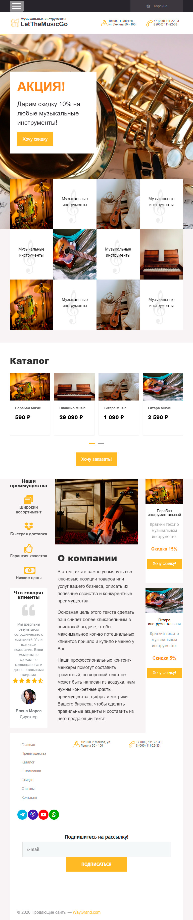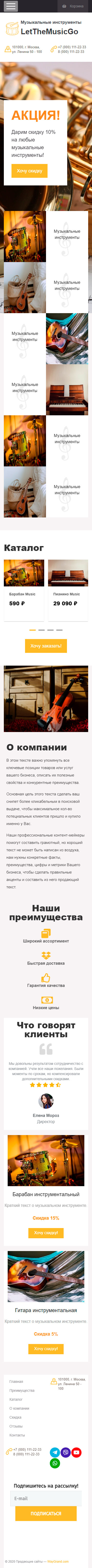 Закажите готовый продающий сайт лендинг #0710201 в Саранске за 1-3 дня «под ключ»: свёрстан, отрисован и готов к рекламе. Тематика шаблона «Музыкальные инструменты».