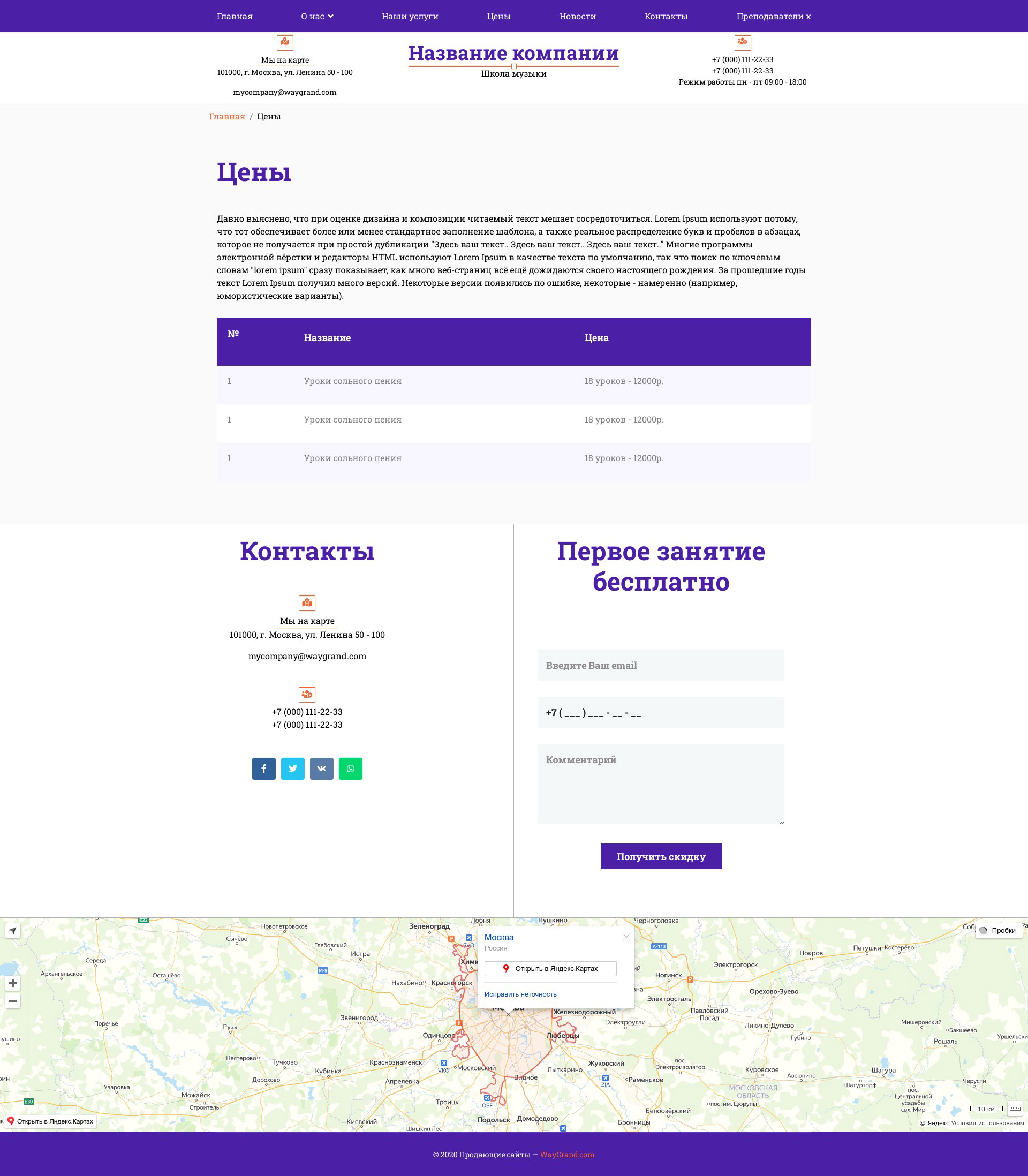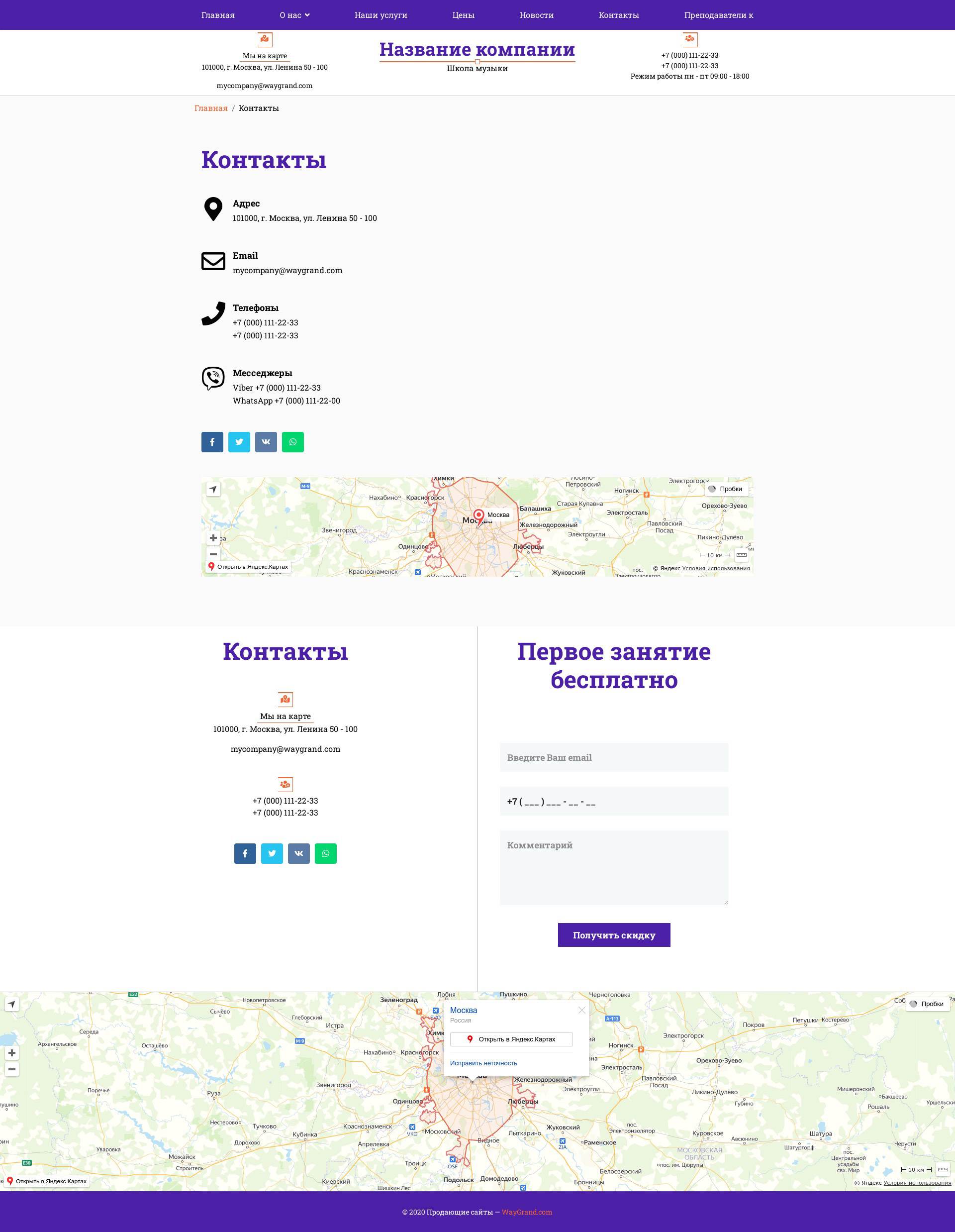 Закажите готовый продающий сайт визитка #1431301 в Саранске за 5-7 дня «под ключ»: свёрстан, отрисован и готов к рекламе. Тематика шаблона «Школа музыки».