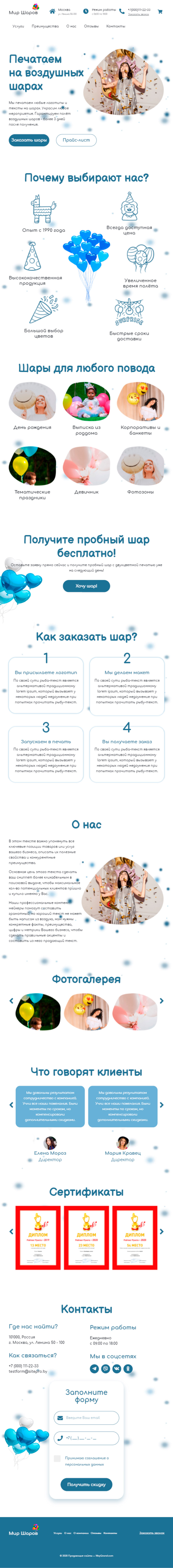 Закажите готовый продающий сайт лендинг #1826202 в Саранске за 1-3 дня «под ключ»: свёрстан, отрисован и готов к рекламе. Тематика шаблона «Печать на воздушных шарах».