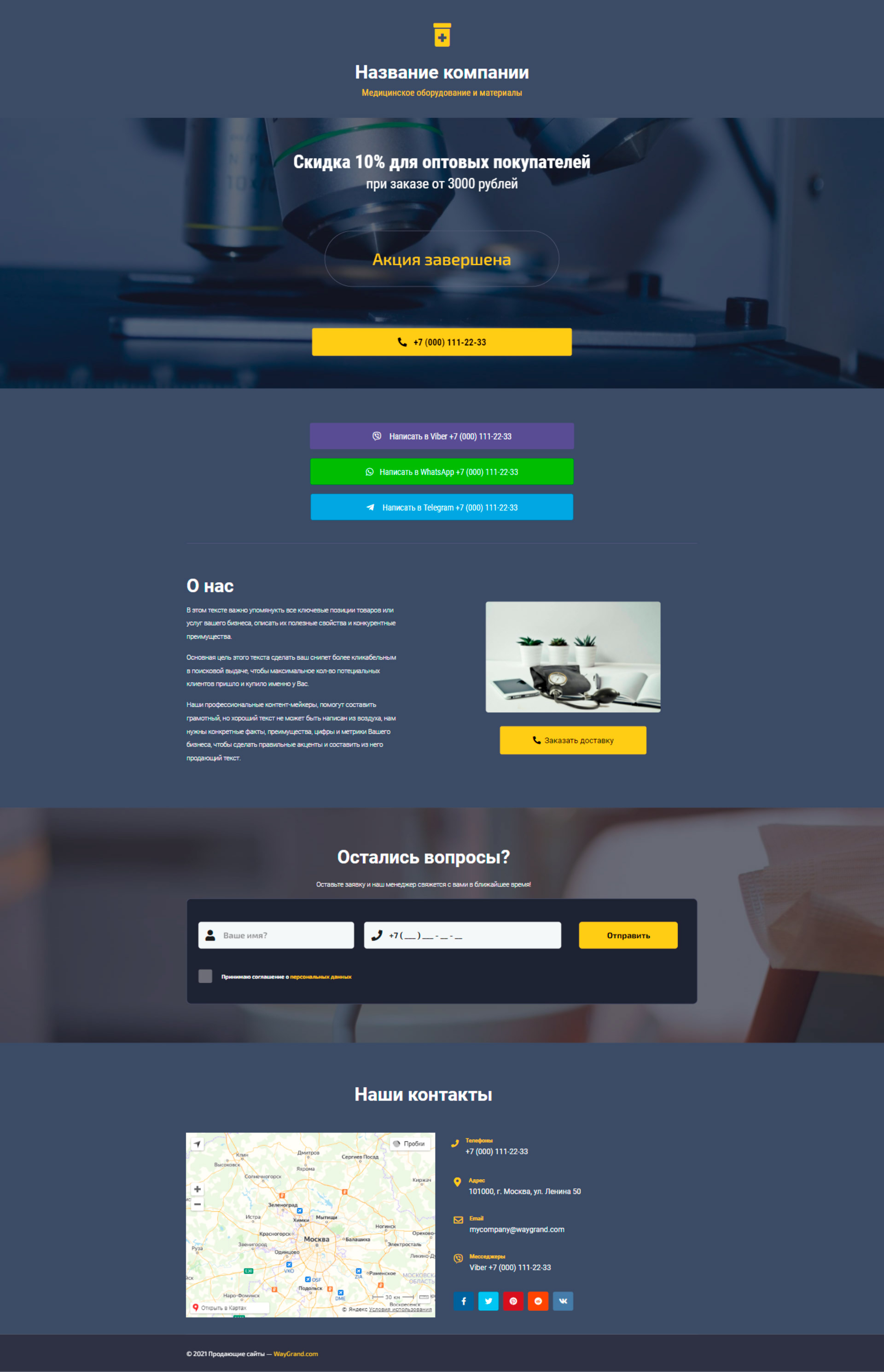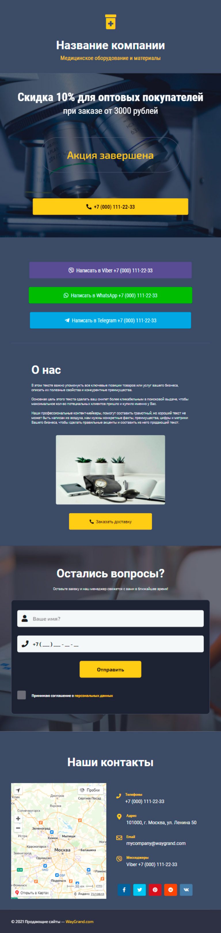Закажите готовый продающий сайт визитка #1027101 в Саранске за 5-7 дня «под ключ»: свёрстан, отрисован и готов к рекламе. Тематика шаблона «Медицинское оборудование и материалы».