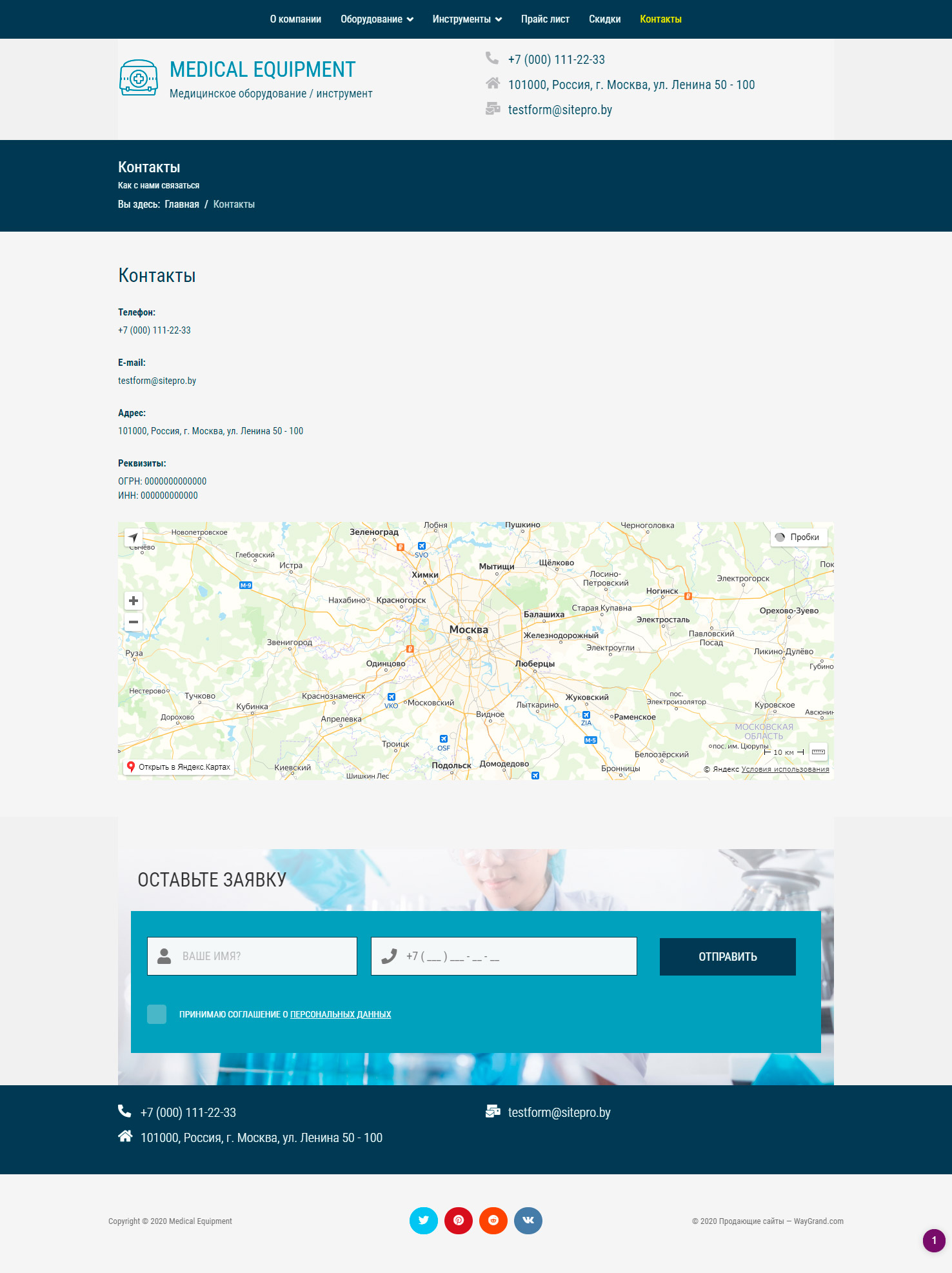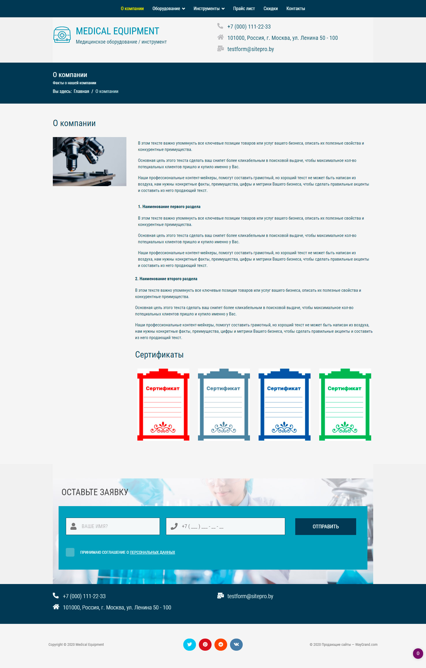 Закажите готовый продающий сайт визитка #1029301 в Саранске за 5-7 дня «под ключ»: свёрстан, отрисован и готов к рекламе. Тематика шаблона «Медицинское оборудование / инструмент».
