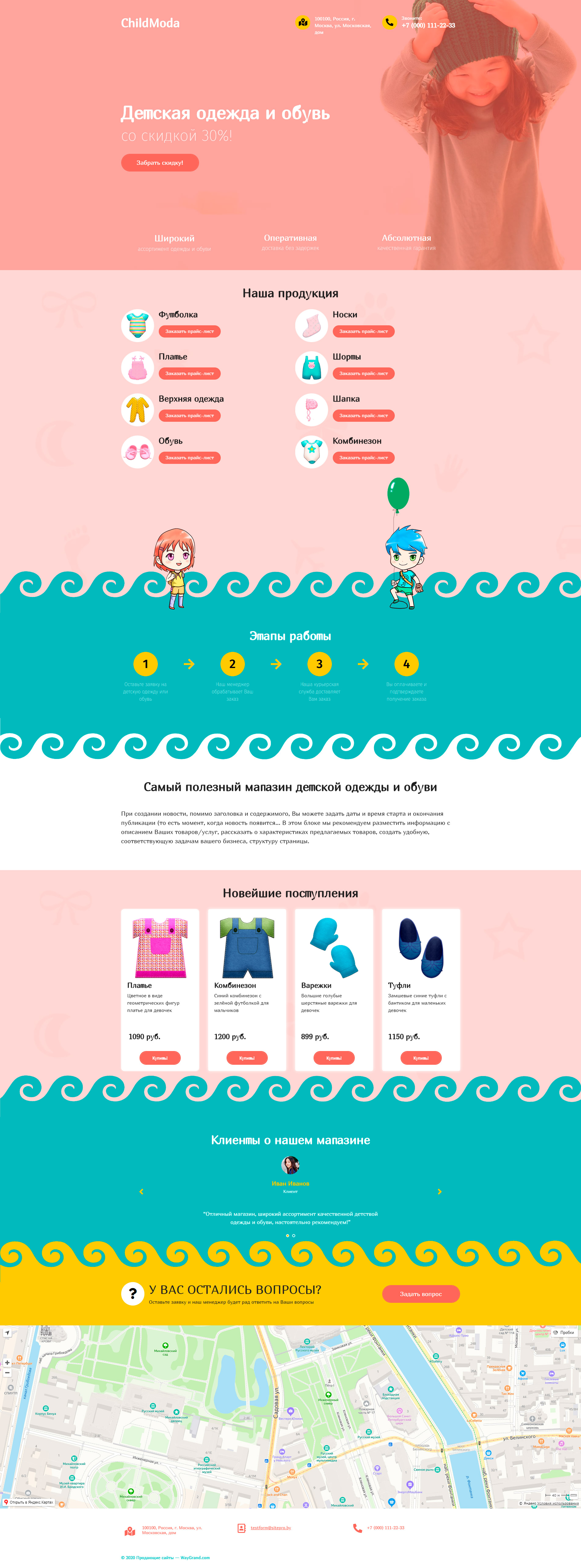 Закажите готовый продающий сайт лендинг #1506201 в Саранске за 1-3 дня «под ключ»: свёрстан, отрисован и готов к рекламе. Тематика шаблона «Детская одежда и обувь».