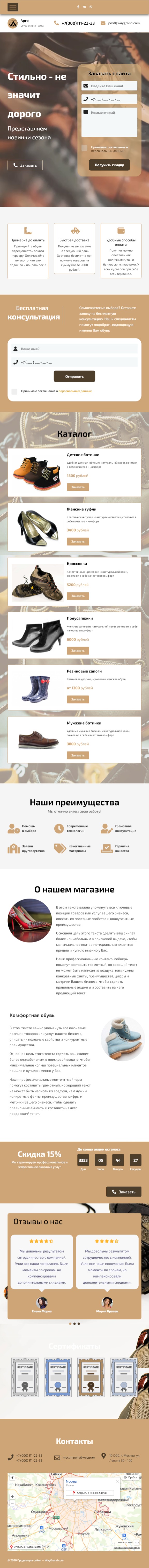 Закажите готовый продающий сайт лендинг #1516201 в Саранске за 1-3 дня «под ключ»: свёрстан, отрисован и готов к рекламе. Тематика шаблона «Обувь, стильная».