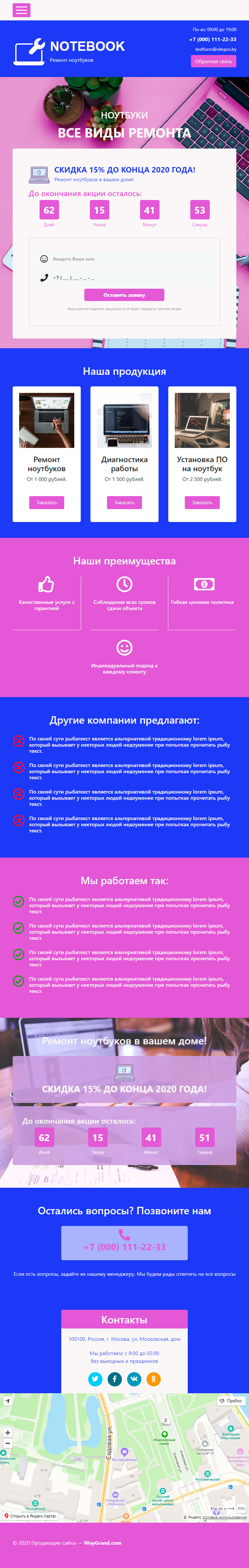 Закажите готовый продающий сайт лендинг #0719201 в Саранске за 1-3 дня «под ключ»: свёрстан, отрисован и готов к рекламе. Тематика шаблона «Ремонт ноутбуков».