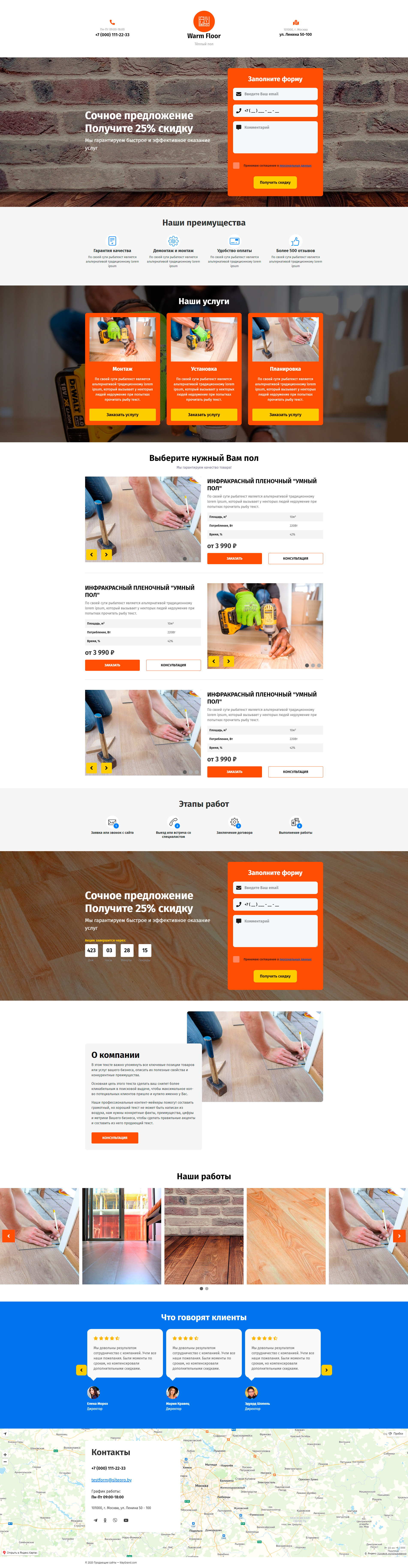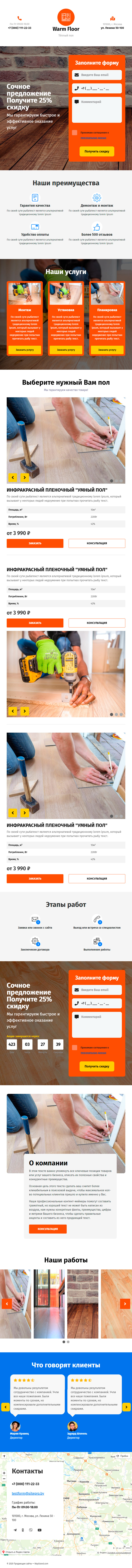 Закажите готовый продающий сайт лендинг #2153201 в Саранске за 1-3 дня «под ключ»: свёрстан, отрисован и готов к рекламе. Тематика шаблона «Монтаж тёплого пола».