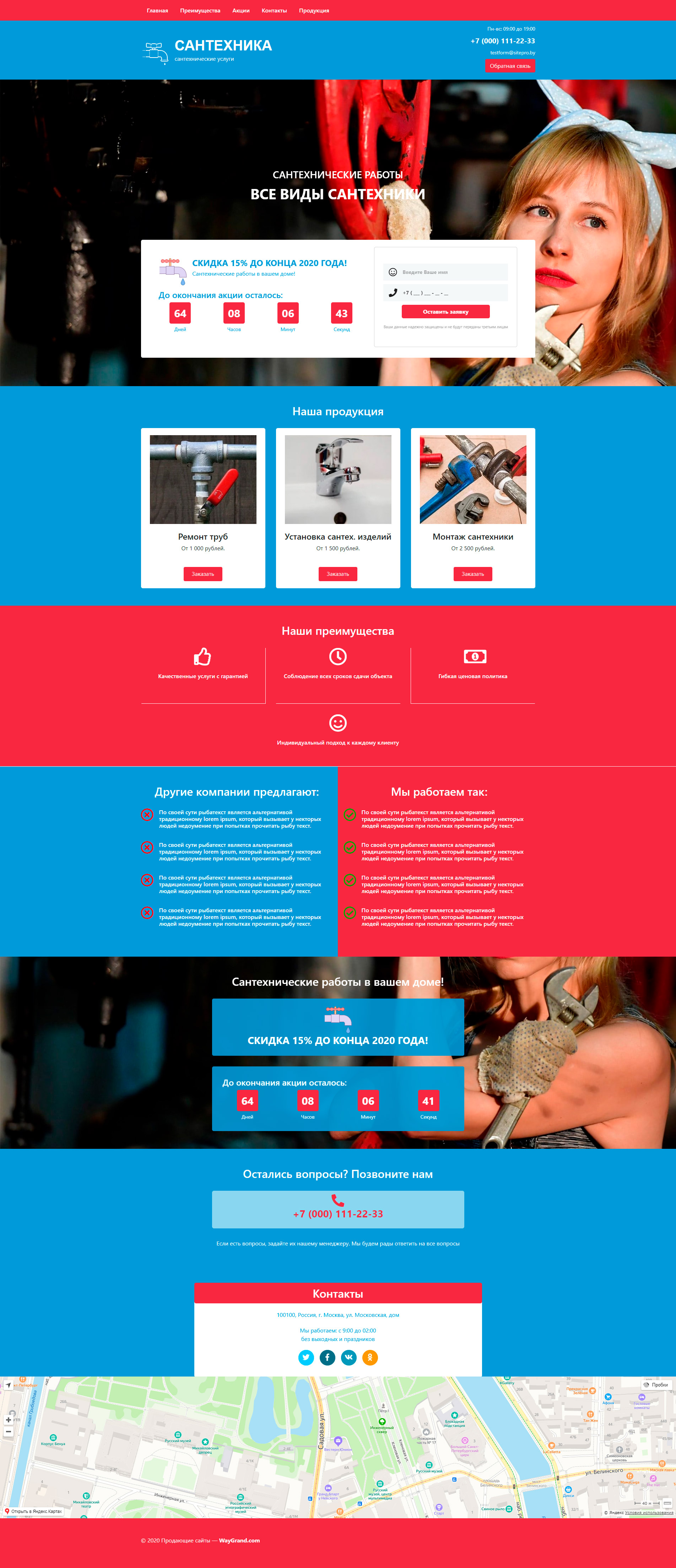 Закажите готовый продающий сайт лендинг #2158202 в Саранске за 1-3 дня «под ключ»: свёрстан, отрисован и готов к рекламе. Тематика шаблона «Сантехника».