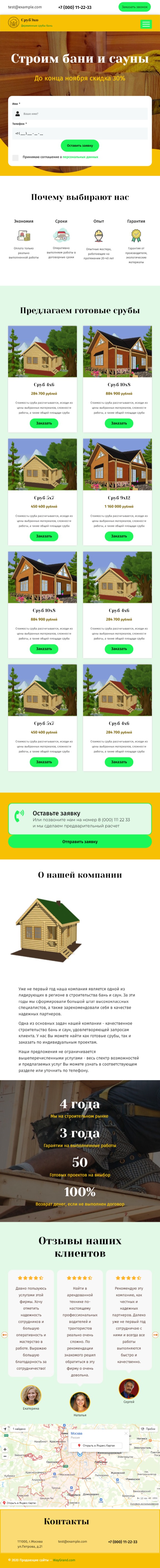 Закажите готовый продающий сайт лендинг #2172202 в Саранске за 1-3 дня «под ключ»: свёрстан, отрисован и готов к рекламе. Тематика шаблона «Строительство бань и саун».