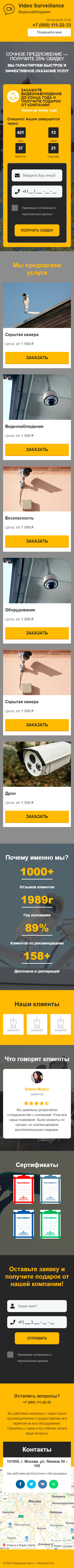 Закажите готовый продающий сайт лендинг #1609202 в Саранске за 1-3 дня «под ключ»: свёрстан, отрисован и готов к рекламе. Тематика шаблона «Видеонаблюдение».