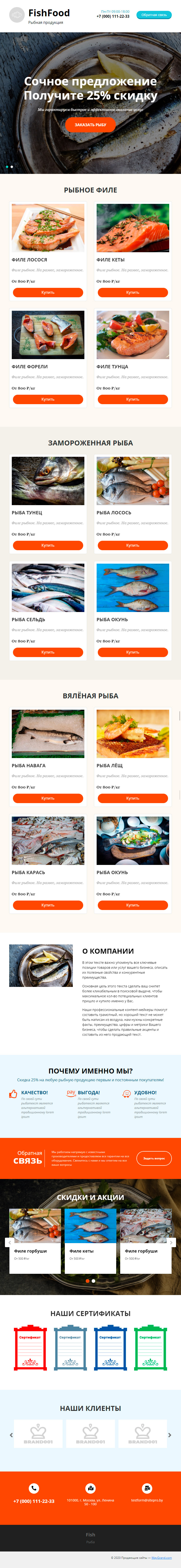 Закажите готовый продающий сайт лендинг #1731201 в Саранске за 1-3 дня «под ключ»: свёрстан, отрисован и готов к рекламе. Тематика шаблона «Рыбная продукция».