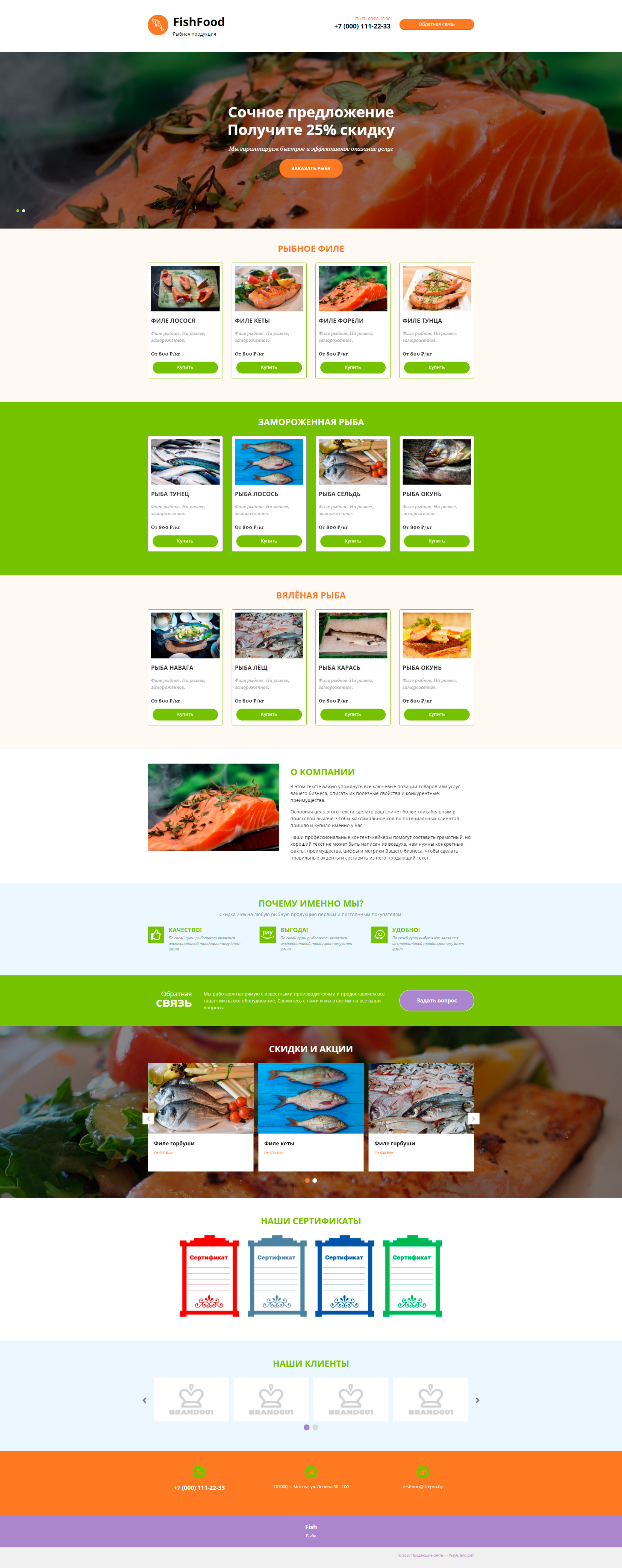 Закажите готовый продающий сайт лендинг #1731202 в Саранске за 1-3 дня «под ключ»: свёрстан, отрисован и готов к рекламе. Тематика шаблона «Рыбная продукция».