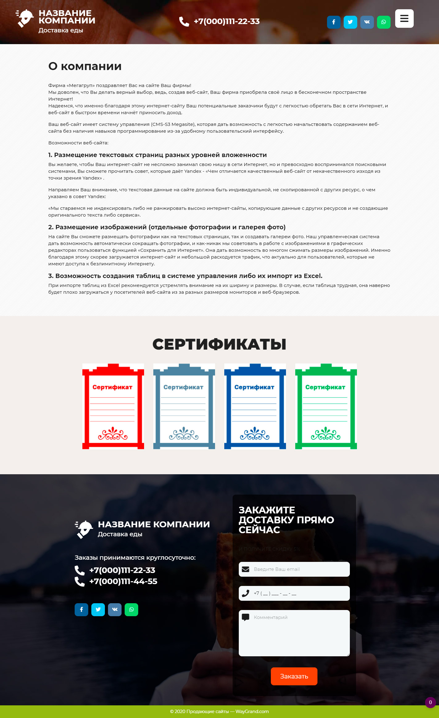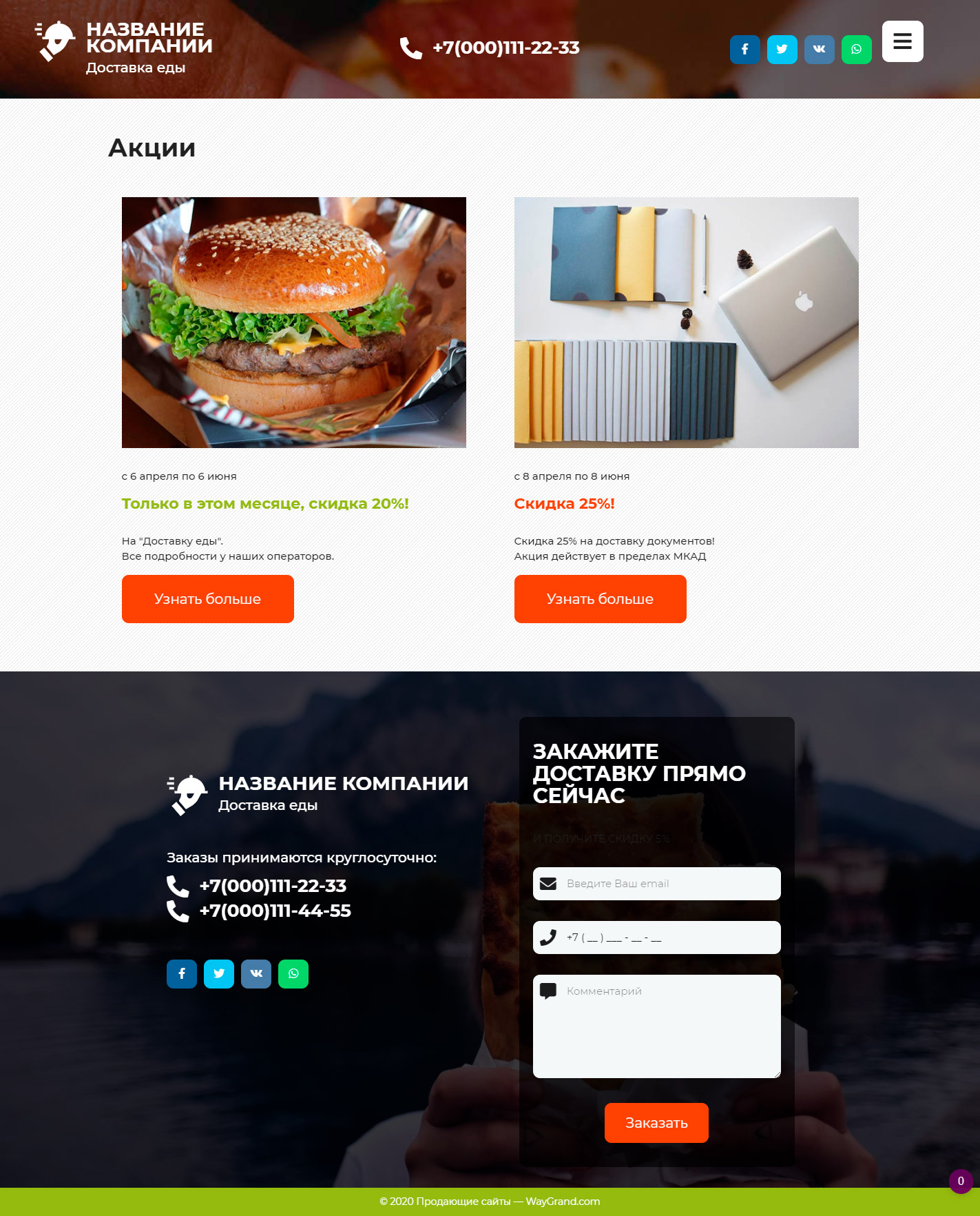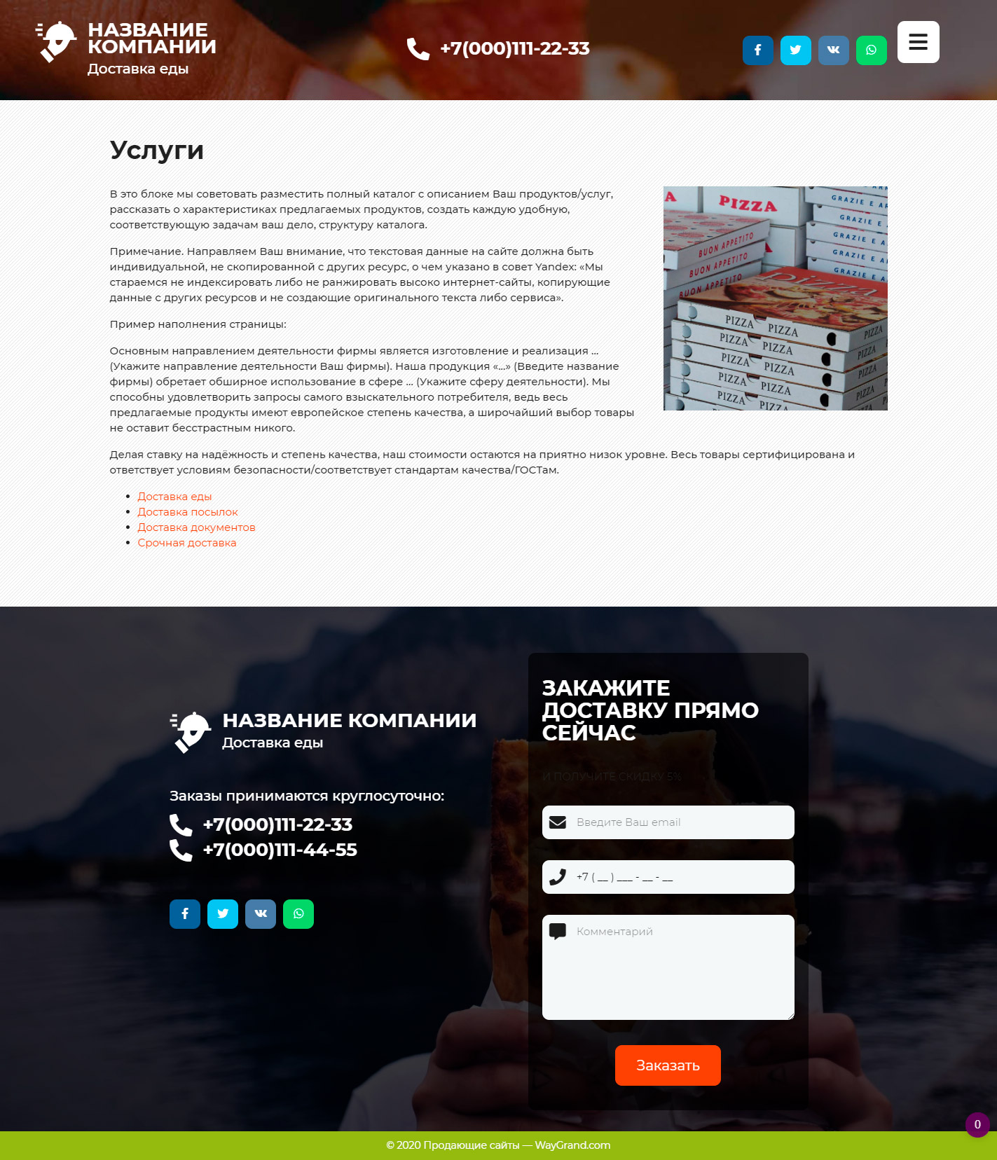 Готовый сайт визитка Курьерская доставка еды #3071302 — Купить на WayGrand.com в Саранске
