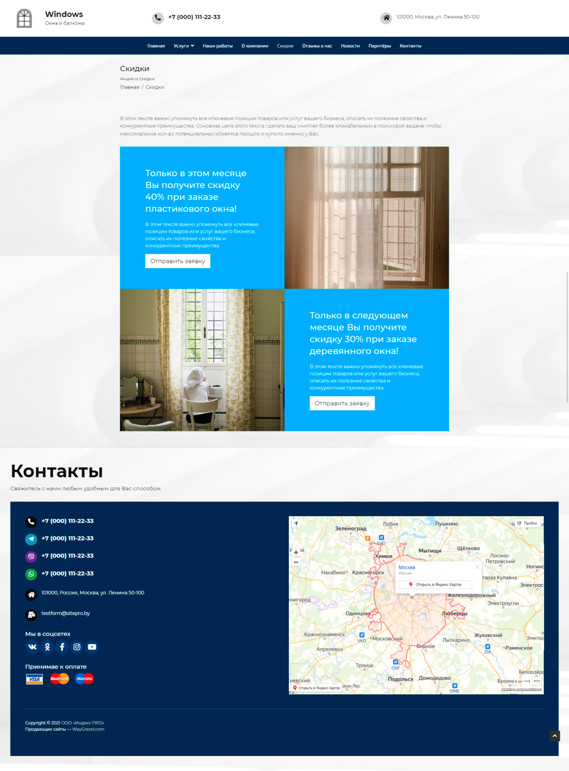 Закажите готовый продающий сайт визитка #2034302 в Саранске за 5-7 дня «под ключ»: свёрстан, отрисован и готов к рекламе. Тематика шаблона «Окна и балконы».