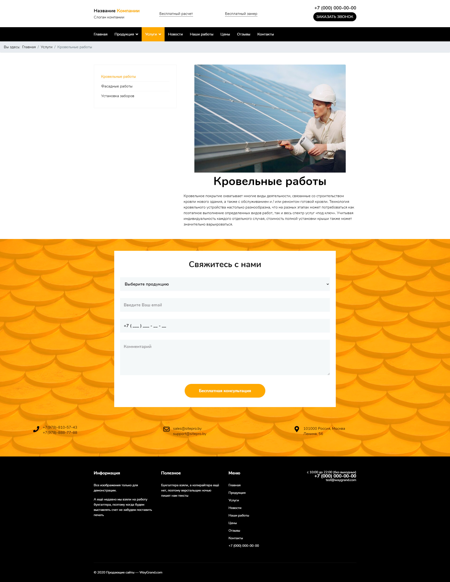Закажите готовый продающий сайт визитка #2132301 в Саранске за 5-7 дня «под ключ»: свёрстан, отрисован и готов к рекламе. Тематика шаблона «Заборы, кровля, фасады».
