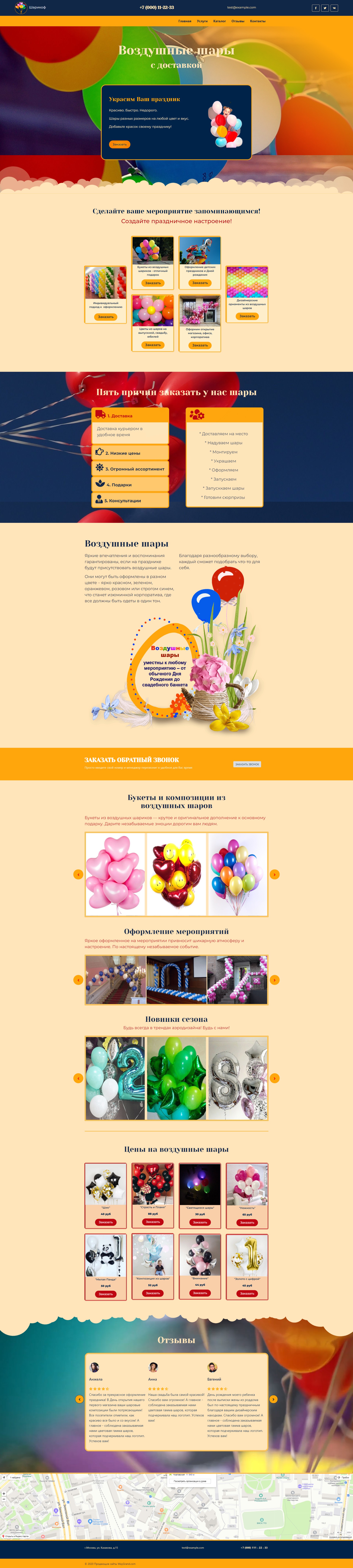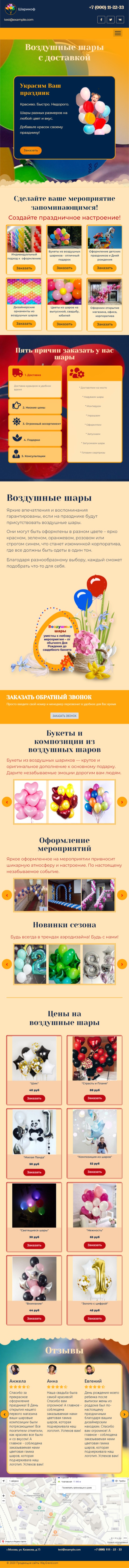 Закажите готовый продающий сайт лендинг #2427202 в Саранске за 1-3 дня «под ключ»: свёрстан, отрисован и готов к рекламе. Тематика шаблона «Воздушные шары».