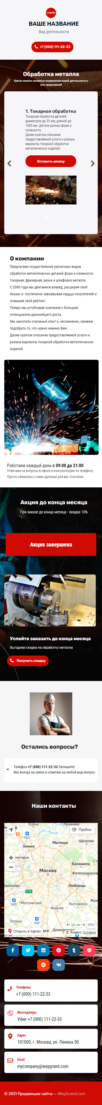 Закажите готовый продающий сайт визитка #1209101 в Саранске за 5-7 дня «под ключ»: свёрстан, отрисован и готов к рекламе. Тематика шаблона «Обработка металла».