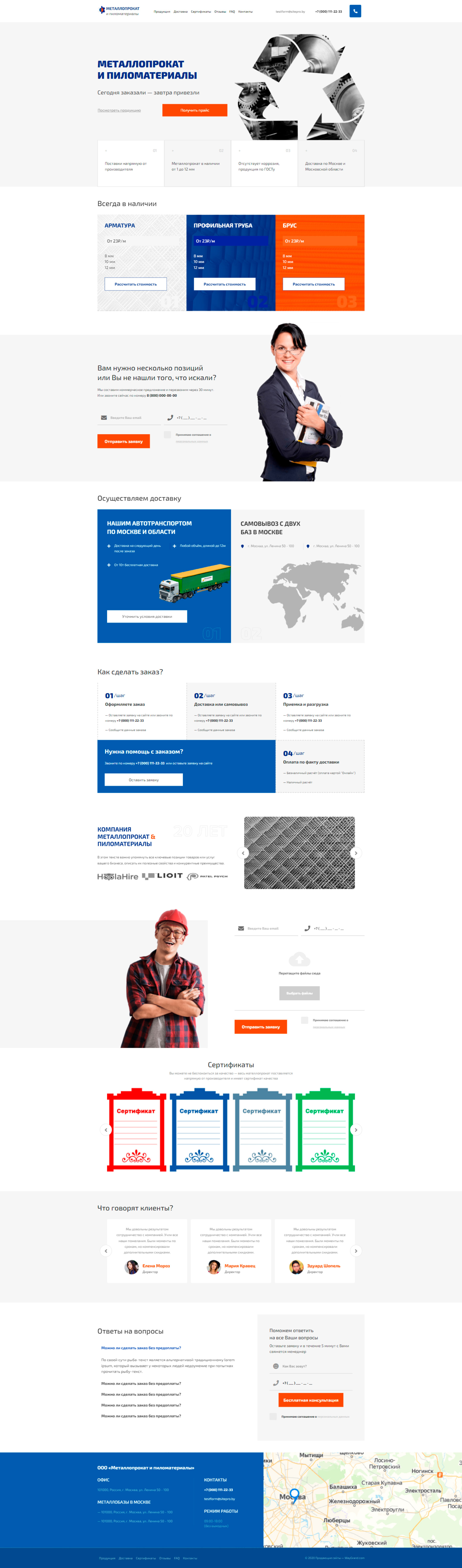 Закажите готовый продающий сайт лендинг #1211201 в Саранске за 1-3 дня «под ключ»: свёрстан, отрисован и готов к рекламе. Тематика шаблона «Металлопрокат и пиломатериалы».