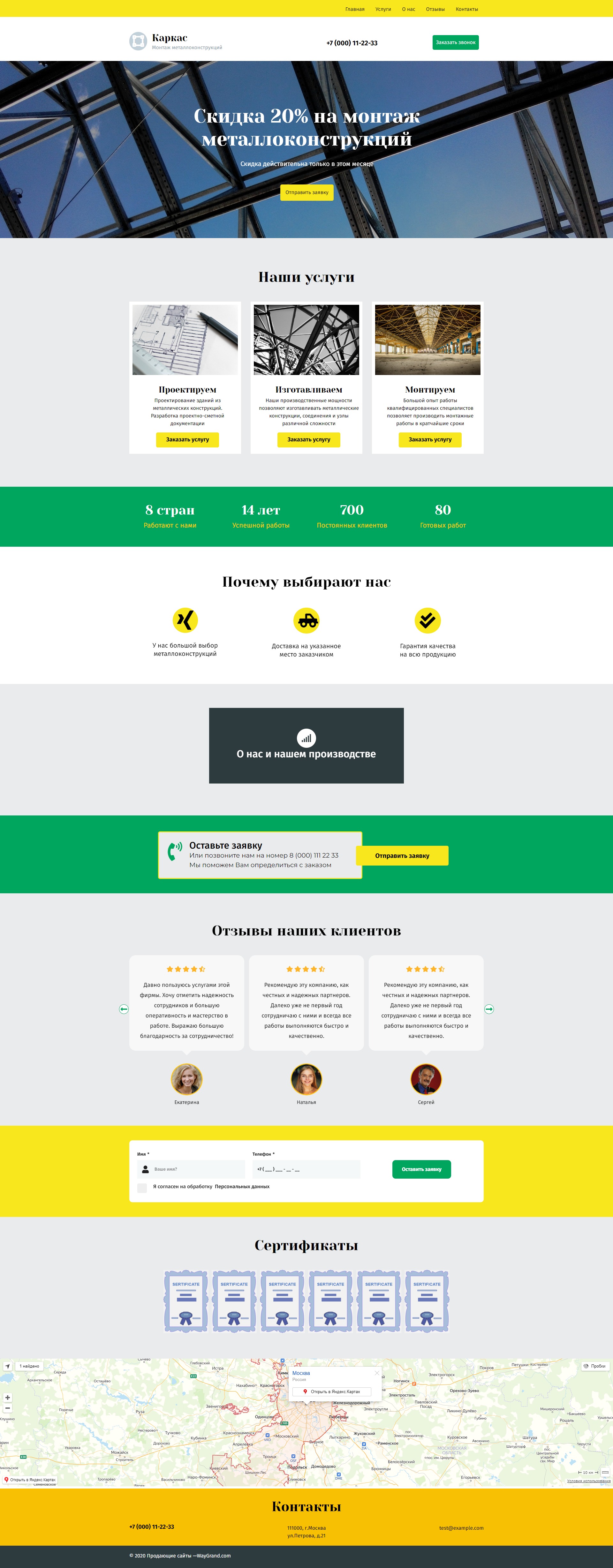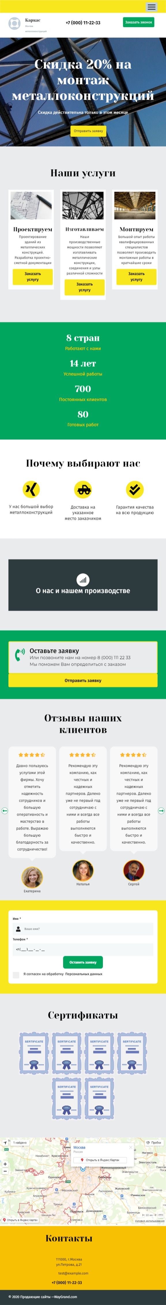 Закажите готовый продающий сайт лендинг #2027201 в Саранске за 1-3 дня «под ключ»: свёрстан, отрисован и готов к рекламе. Тематика шаблона «Металлоконструкции».