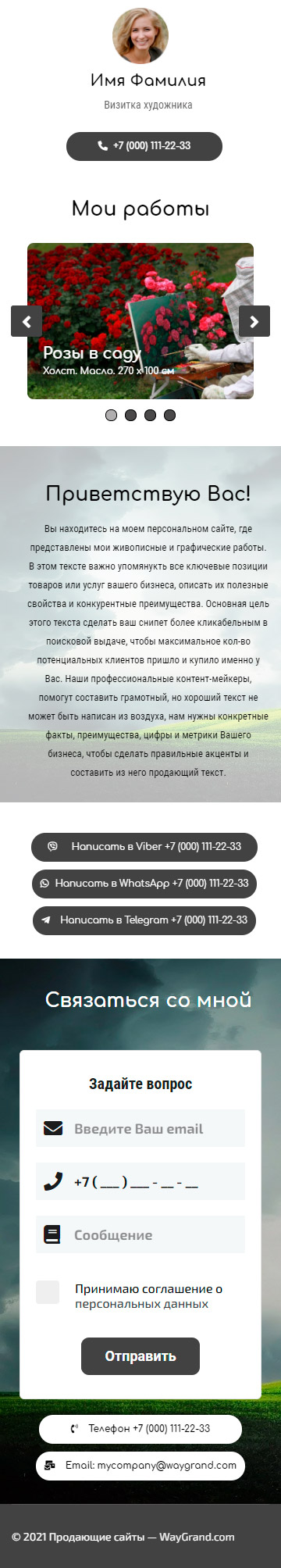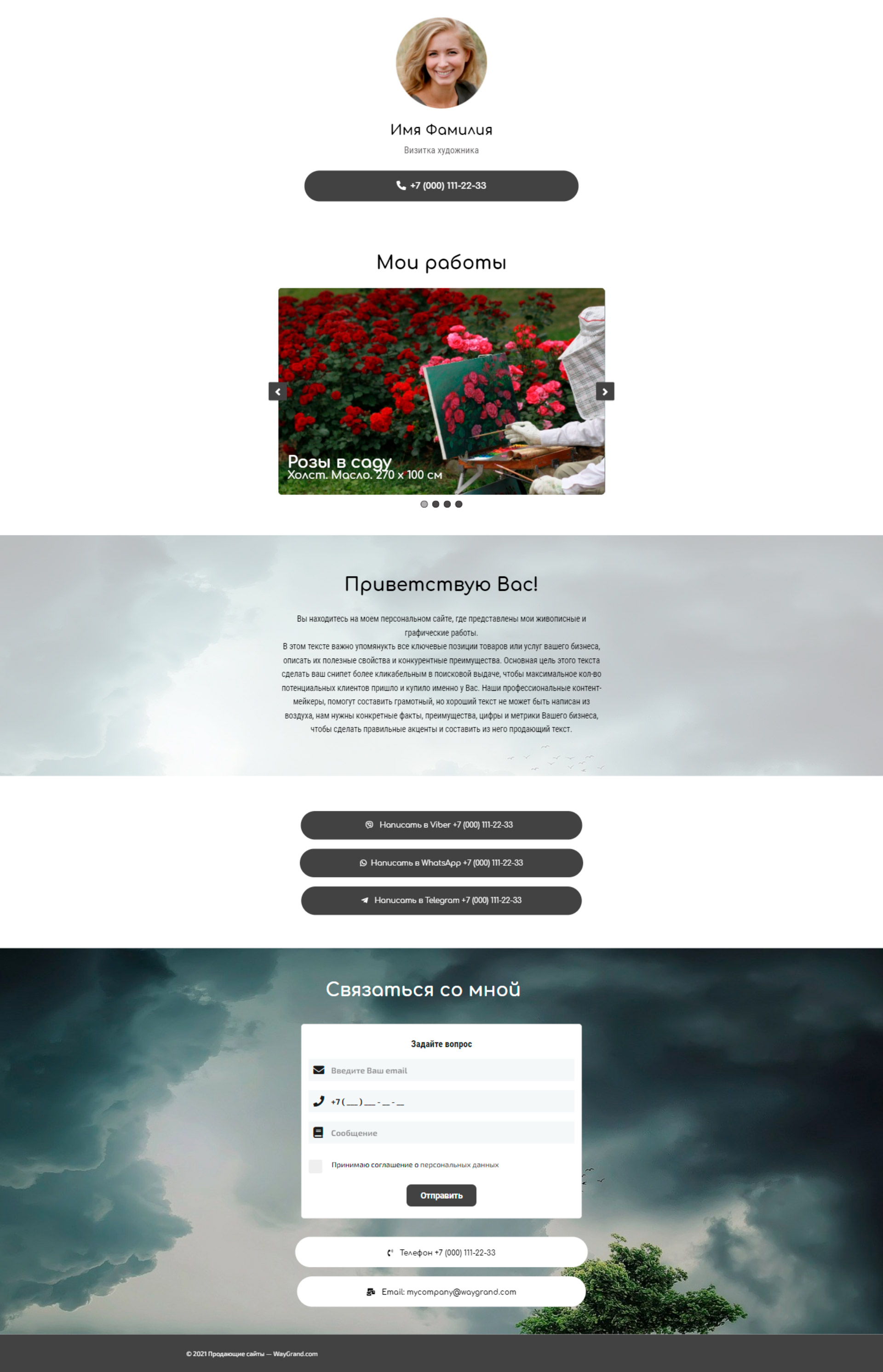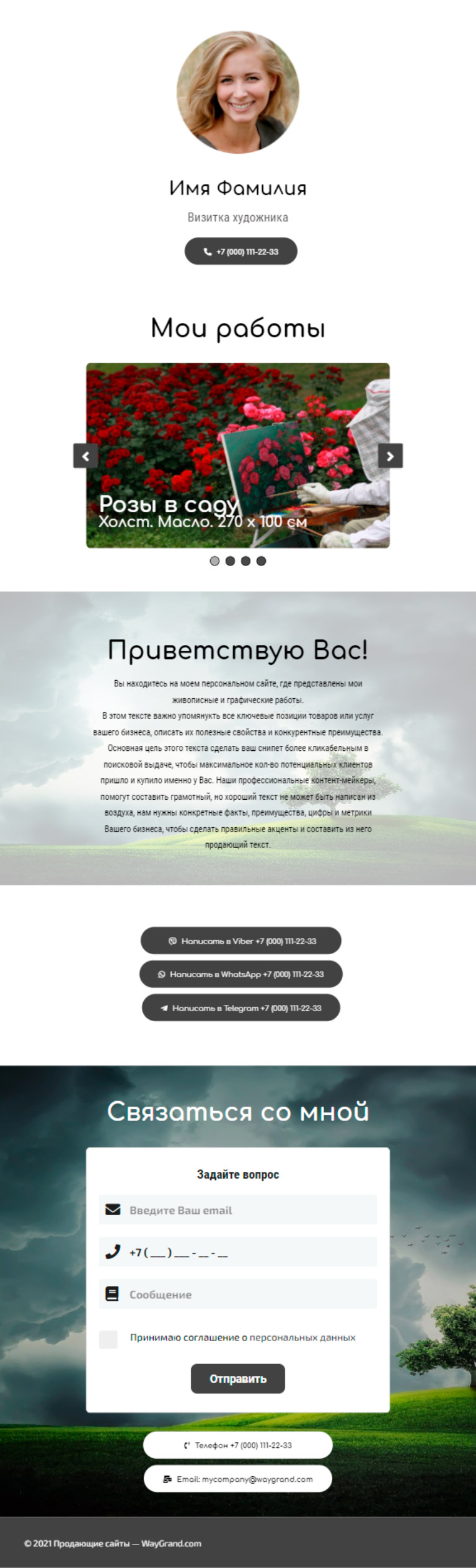 Закажите готовый продающий сайт визитка #0826101 в Саранске за 5-7 дня «под ключ»: свёрстан, отрисован и готов к рекламе. Тематика шаблона «Визитка художника».