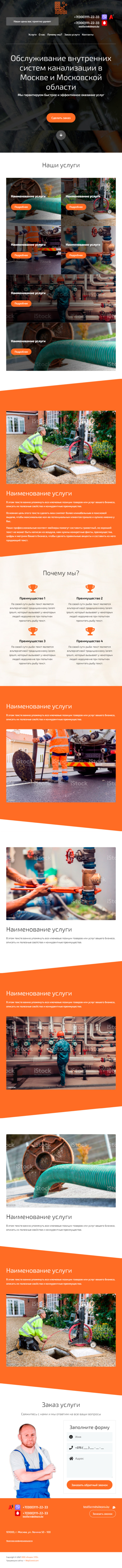 Закажите готовый продающий сайт лендинг #2137202 в Саранске за 1-3 дня «под ключ»: свёрстан, отрисован и готов к рекламе. Тематика шаблона «Обслуживание внутренних систем канализации».