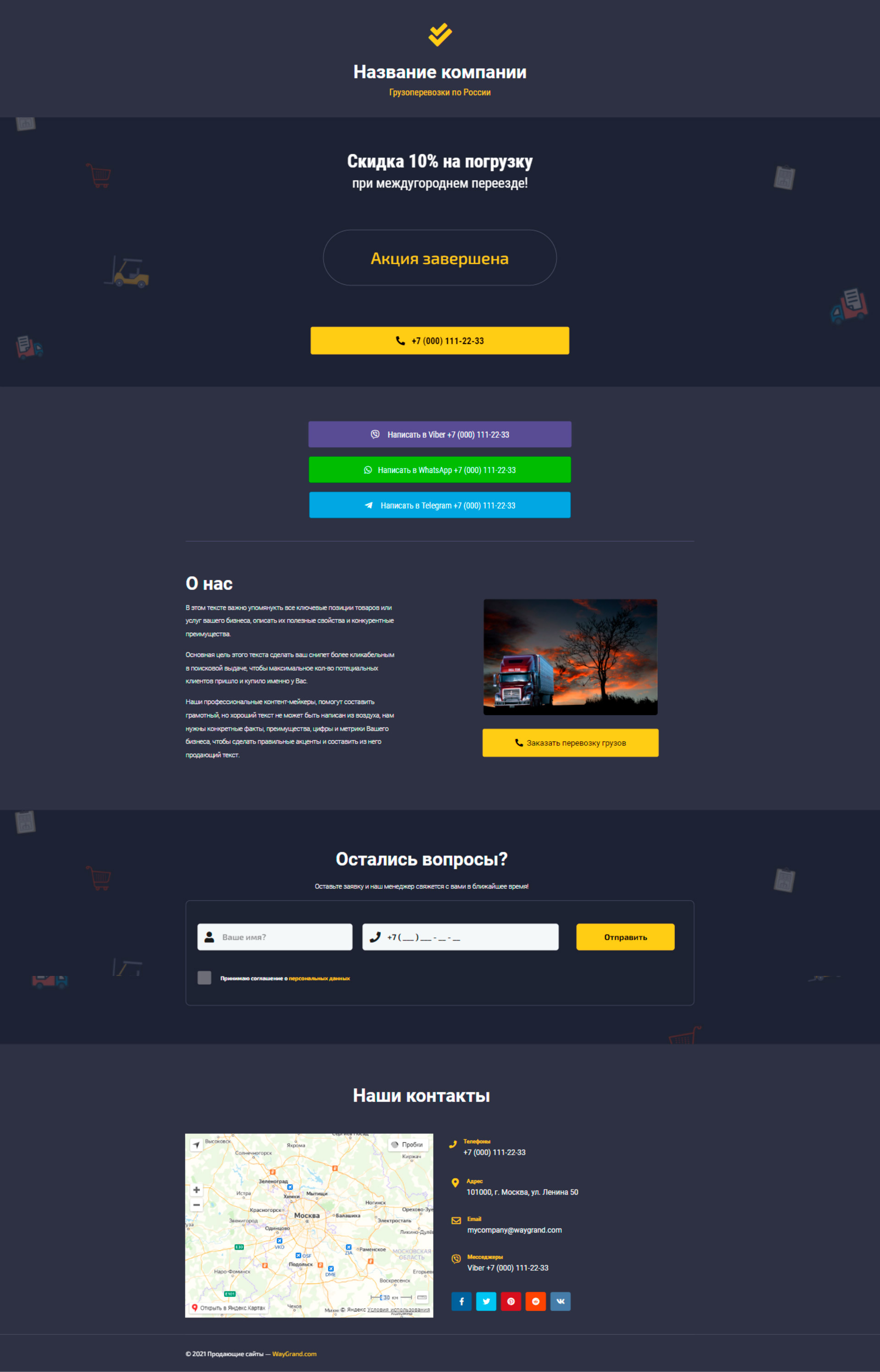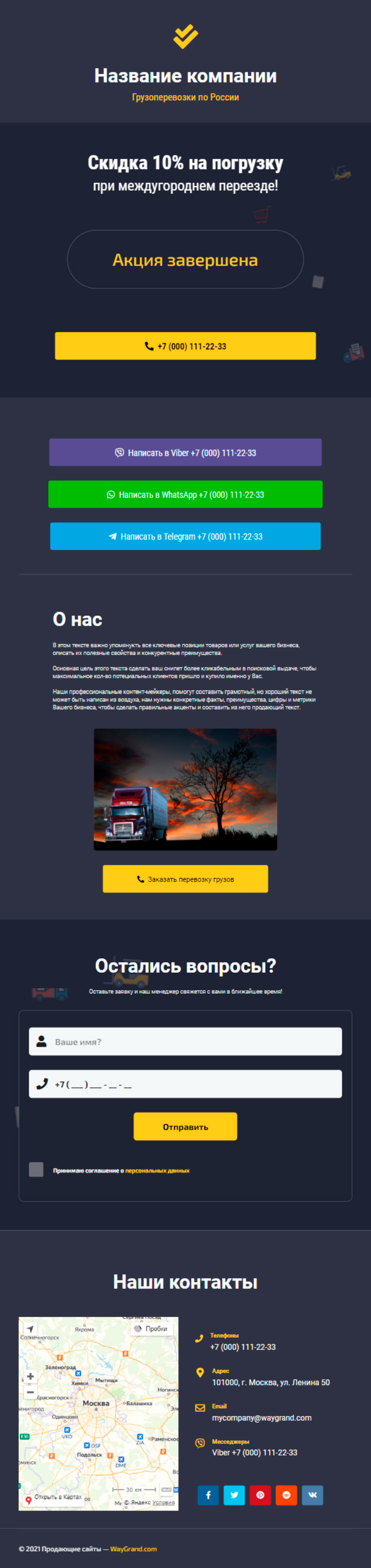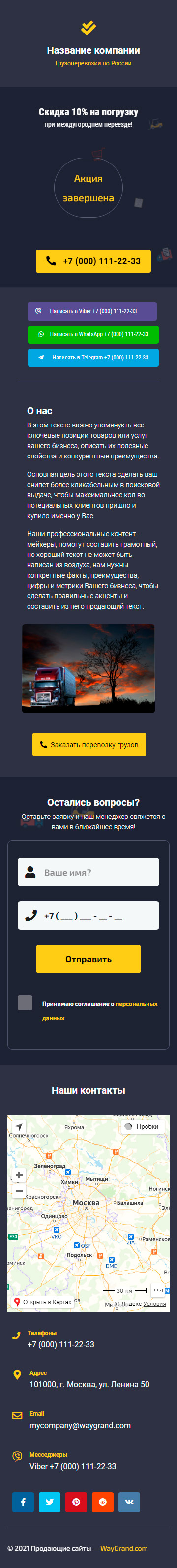 Закажите готовый продающий сайт визитка #2515101 в Саранске за 5-7 дня «под ключ»: свёрстан, отрисован и готов к рекламе. Тематика шаблона «Грузоперевозки по России».