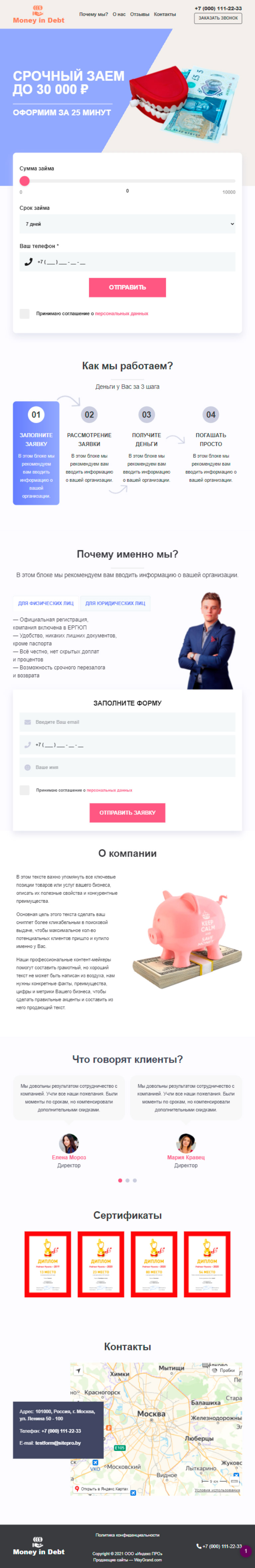 Закажите готовый продающий сайт лендинг #2825202 в Саранске за 1-3 дня «под ключ»: свёрстан, отрисован и готов к рекламе. Тематика шаблона «Деньги в долг».