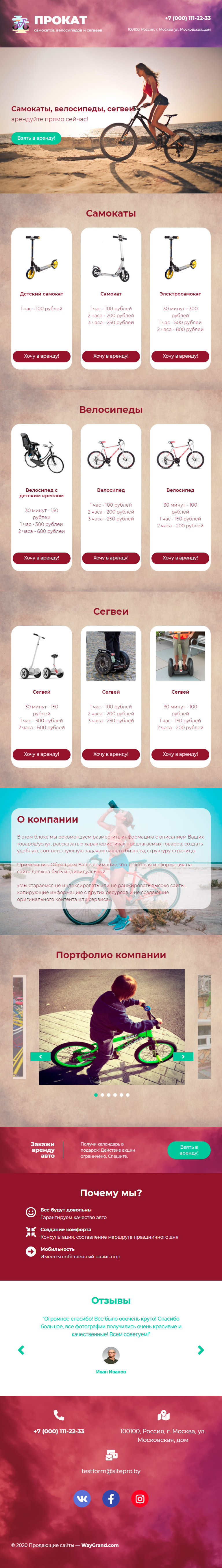 Закажите готовый продающий сайт лендинг #1907201 в Саранске за 1-3 дня «под ключ»: свёрстан, отрисован и готов к рекламе. Тематика шаблона «Прокат самокатов и велосипедов».