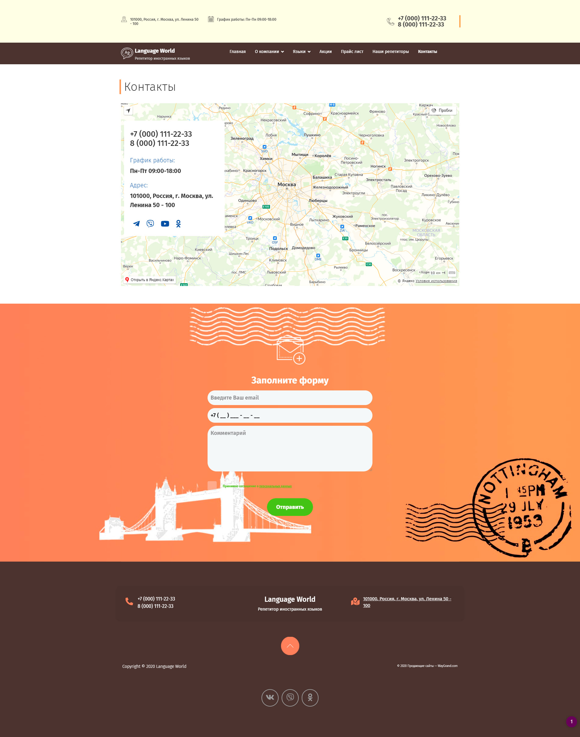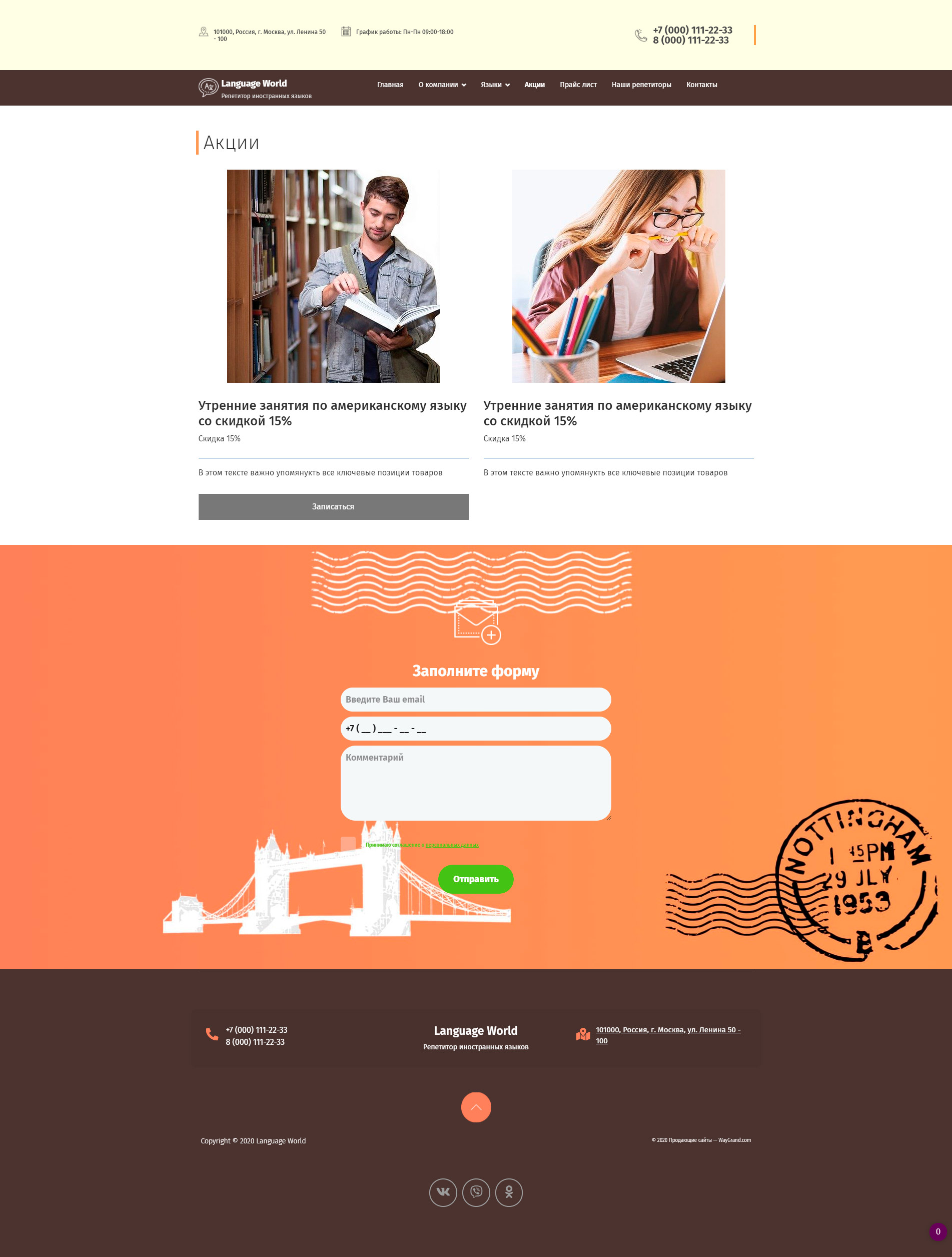 Закажите готовый продающий сайт визитка #1448303 в Саранске за 5-7 дня «под ключ»: свёрстан, отрисован и готов к рекламе. Тематика шаблона «Курсы иностранных языков».
