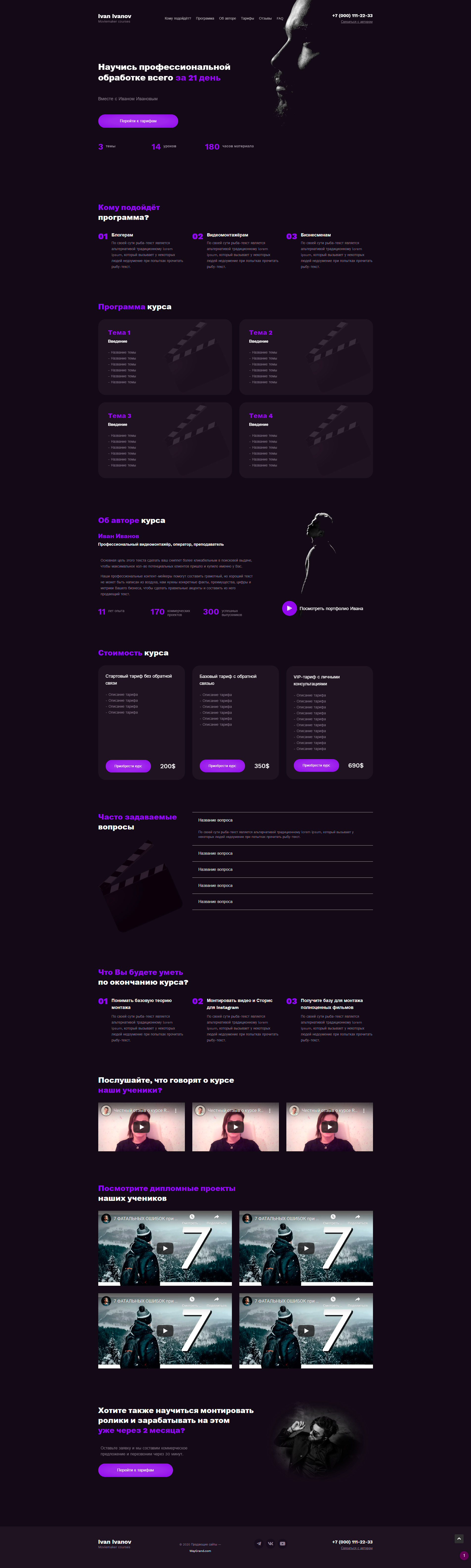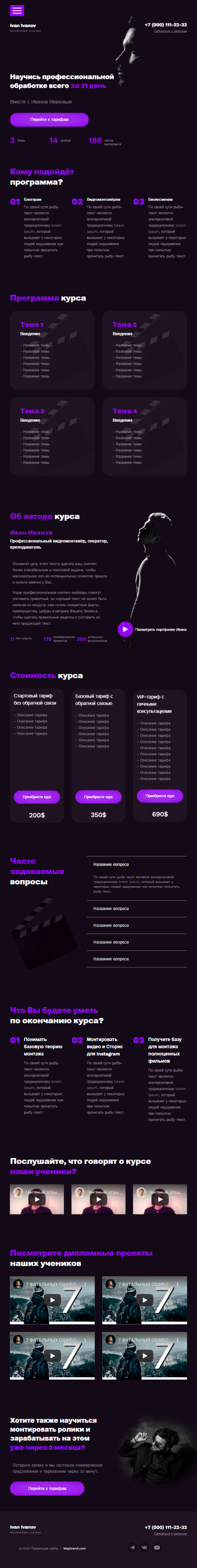 Закажите готовый продающий сайт лендинг #1467204 в Саранске за 1-3 дня «под ключ»: свёрстан, отрисован и готов к рекламе. Тематика шаблона «Для курса видеомонтажа».