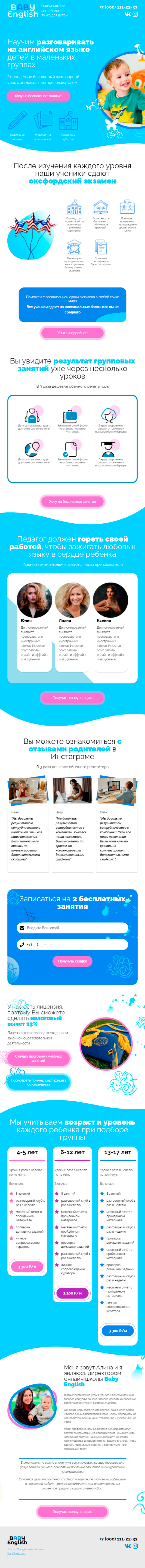 Закажите готовый продающий сайт лендинг #3172201 в Саранске за 1-3 дня «под ключ»: свёрстан, отрисован и готов к рекламе. Тематика шаблона «Английский для детей».