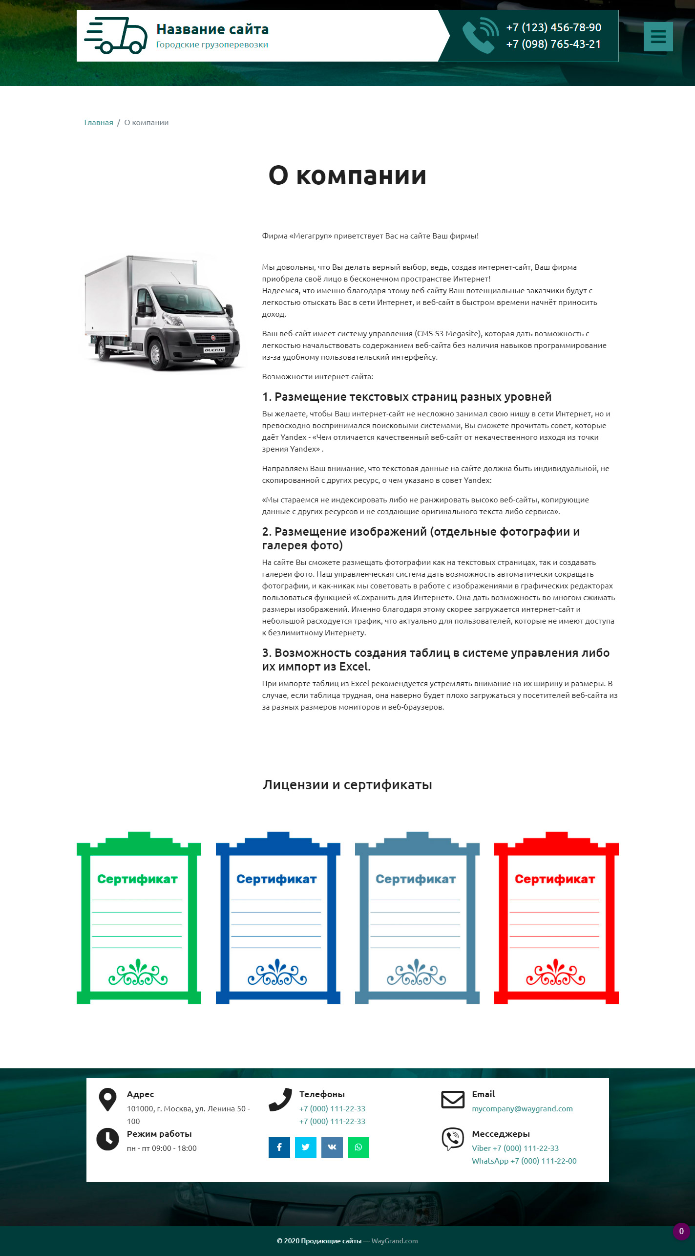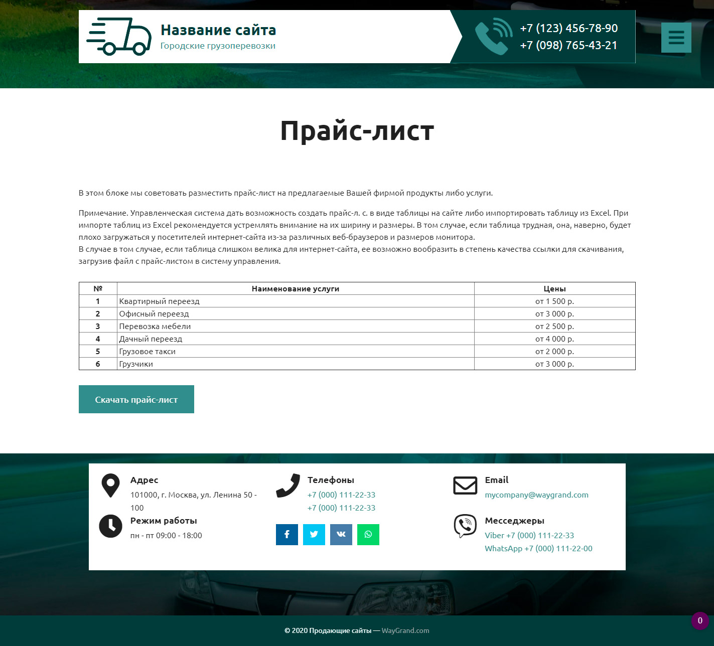 Закажите готовый продающий сайт визитка #2515302 в Саранске за 5-7 дня «под ключ» по доступным ценам на WayGrand: свёрстан, отрисован и готов к рекламе. Тематика шаблона «Городские грузоперевозки».