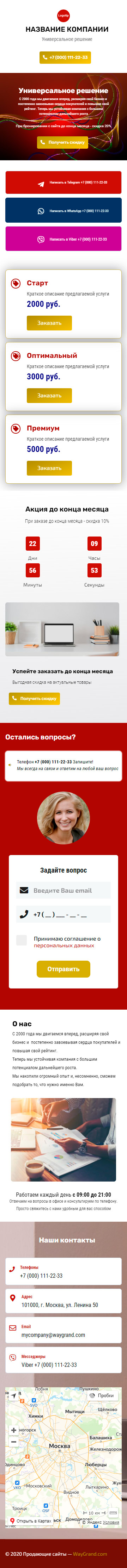- Промоблок "Универсальное решение" с кнопкой призыва к действию "Получить скидку"