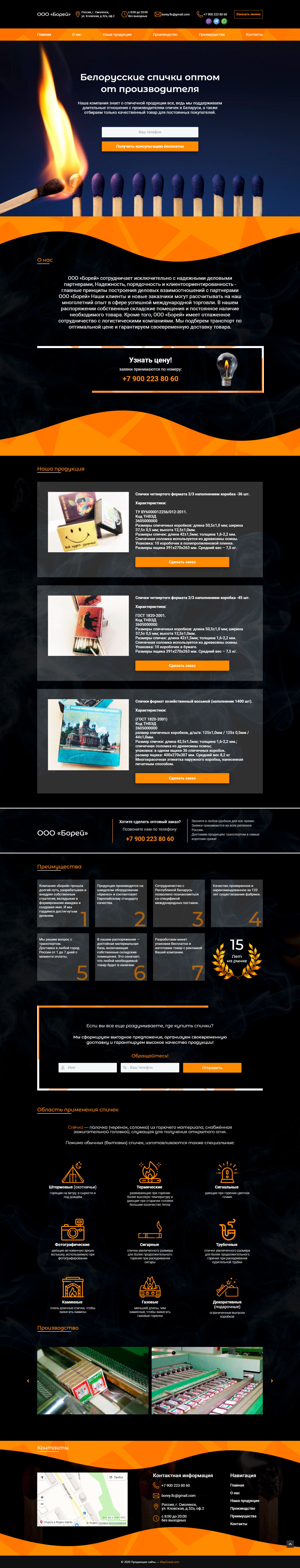Закажите готовый продающий сайт лендинг #115 в Саранске за 1-3 дня «под ключ»: свёрстан, отрисован и готов к рекламе. Тематика шаблона «Белорусские спички оптом от производителя».